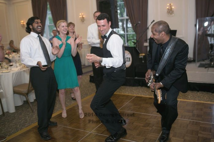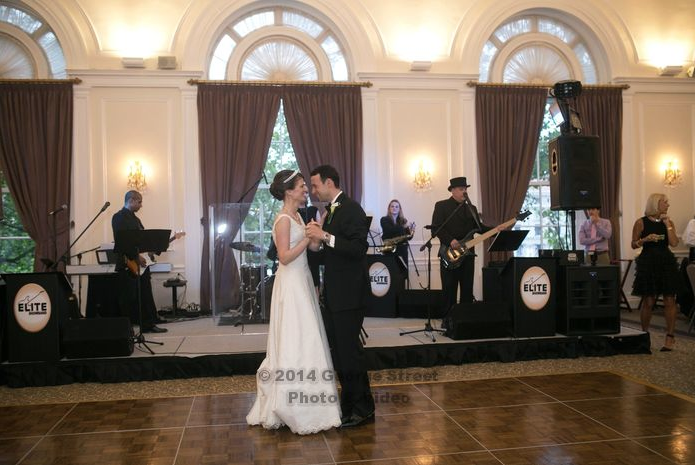 Congratulations to Emily and John! We were so pleased to provide the soundtrack to a lovely reception. This melodious wedding joined two fellow musicians and marked Elite Show Band’s first gig at the gorgeous University Club. Enchanting family and friends with a choreographed first dance, the bride and groom took to the floor to Madeleine Peyroux’s jaunty ballad Don’t Wait Too Long.John proved to be a fun-loving performer in his own right, unveiling an uncanny, Chuck Berry-esque duck walk to Johnny B. Goode. We know your life together will overflow with music and laughter. Thank you for letting us be there from the beginning!